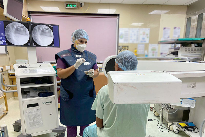 Modified Barium Swallow Study is a dynamic radiologic test done to visualise all phases of swallowing. The study uses a special real-time form of x-ray called fluoroscopy. The patient is given items with different thicknesses and textures mixed in a radio-opaque substance called barium. These items may range from thin barium to barium-coated cookies. The physiologic movements of swallowing are then observed under the fluoroscope, thus drawing interpretations of the underlying swallowing problem.